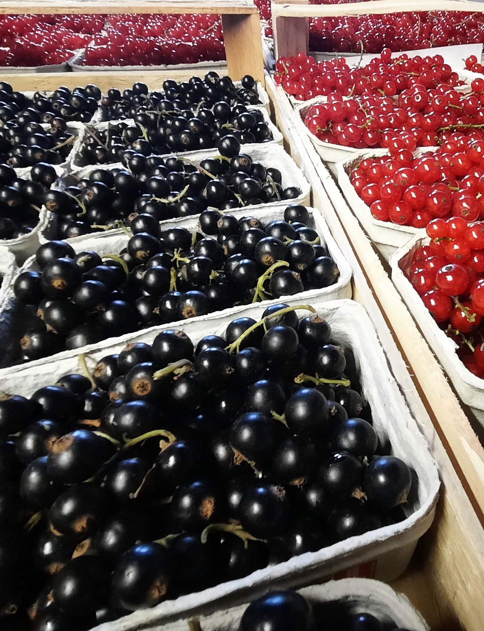 Wir bauen als Hauptkulturen Erdbeeren, Himbeeren und Johannisbeeren an.